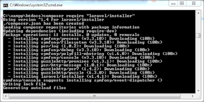 Masih di cmd yang tadi ketikan sintaks berikut composer global require "laravel/installer"
